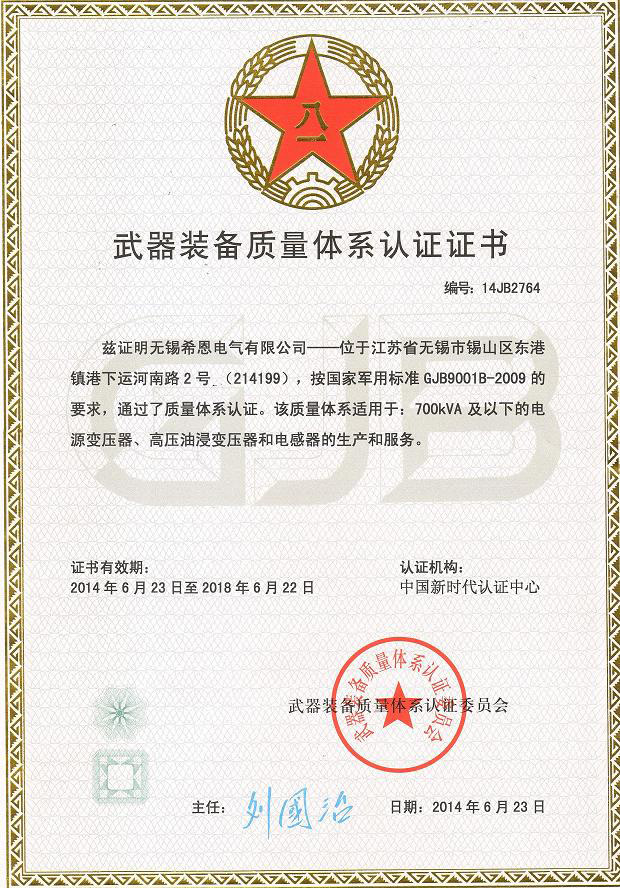經過3年層層嚴格審核,7月18日,午夜小福利電氣終於取得了由武器裝備質量管理體係認證委員會頒發的《武器裝備管理體係認證證書》。